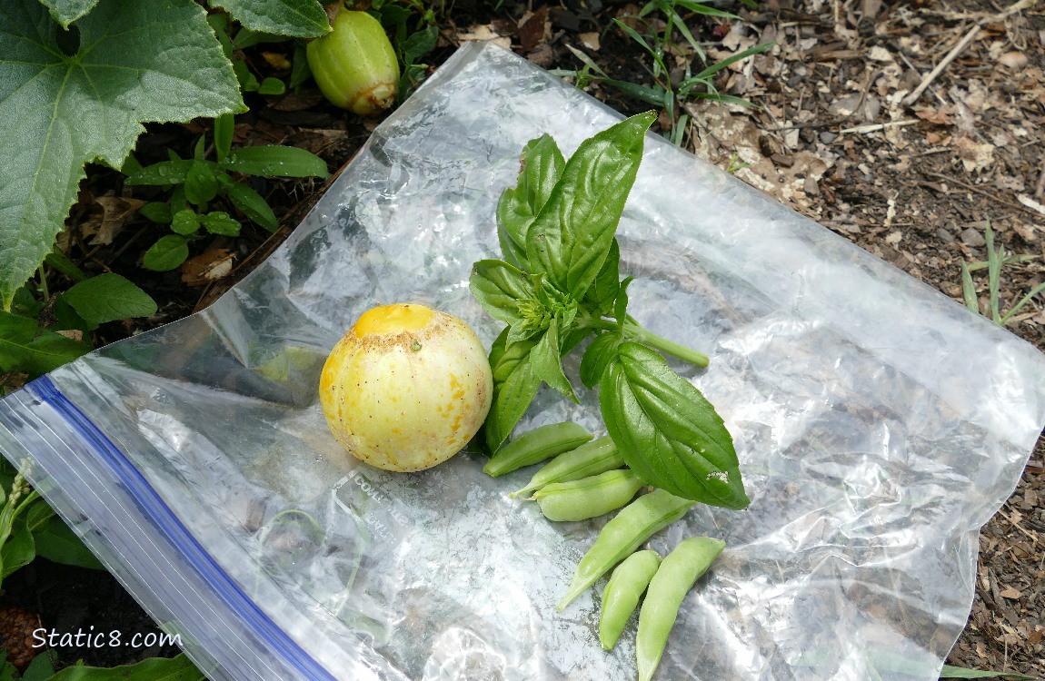 A very quick stop at the Garden. The Accidental Lemon Cucumber is still putting out new leaves! It has hung on to life for so long... I'm starting to think it's going to grow and make some cucs one day!